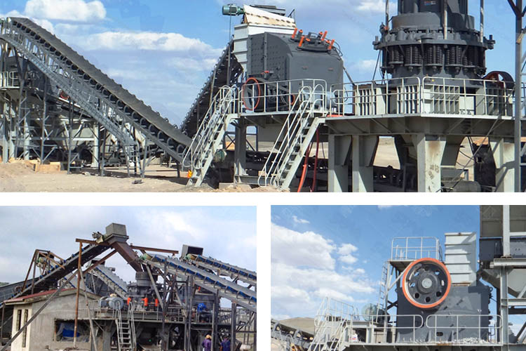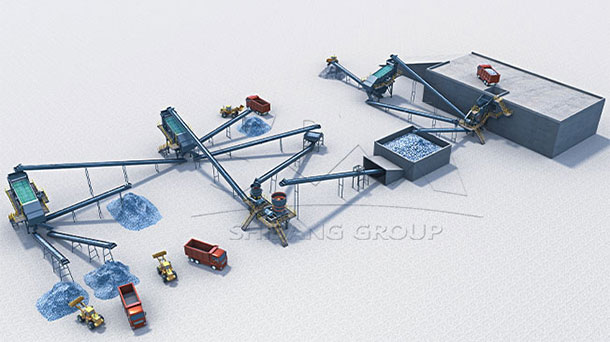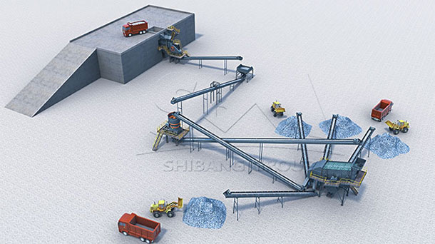 Granite is uniform in structure and rigid in texture. It is a kind of high-quality durable aggregates. For crushing of granite, at the first stage, jaw crusher is used for coarse crushing. Then, cone crusher works for middle and fine crushing. Sometimes, according to different demands, impact crusher (sand-making machine) would play a role in optimizing shape of material.