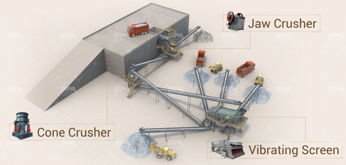 In stone crushing operations, the arrange of granite crushing production line andlayout of crushing plants and optional equipment and structures is a crucial factor in meeting production requirements meantime keeping capital and operational costs to a minimum.
