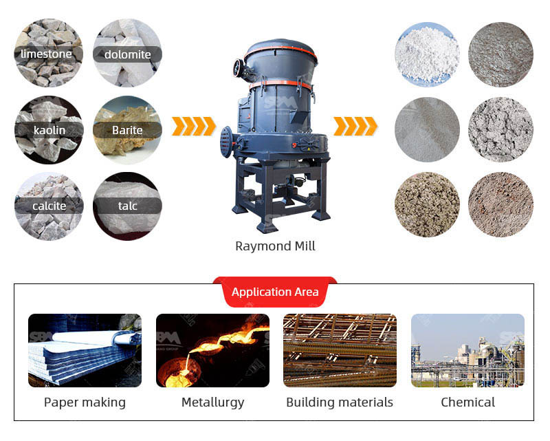 The Raymond Mill is a grinding machine, suitable for the preparation of various kinds of mineral powder and coal powder preparation.
