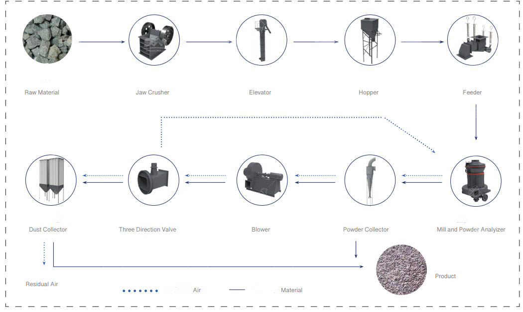 A Raymond Mill covers a small area, and can complete powder preparation efficiently and the fineness of the finished product is uniform and the screening rate can be as high as 99%;