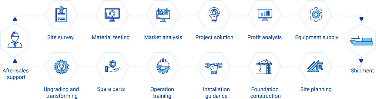 SBM's comprehensive life-cycle services cover all production line aspects, from equipment selection to maintenance and spare parts supply. Our seamless approach saves time, boosts efficiency, and enhances profitability for global customers.